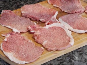 Mięso należy pokroić na plasterki o grubości około 1 centymetra, a następnie pobić z obu stron, posolić i popieprzyć. Następnie przekładamy do naczynia na około 15 minut, by mięso przeszło przyprawami. Kiedy mięso nabiera mocy, bierzemy połowę cebuli i kroimy je w półpierścienie.