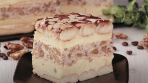 Przepisy Szybki przepis na deser z długich biszkoptów. Połączenie wszystkich składników zachwyci rodzinę i przyjaciół. On lip 20, 2023 1 265 Doskonały przepis na deser z biszkoptów – zachwyci gości, rozpieści podniebienia! Ten prosty w przygotowaniu deser inspirowany był słynnym włoskim tiramisu. Lekkie jak piórko ciasto doskonale pasuje do popołudniowej kawy! Składniki: 200 g podłużnych biszkoptów – lady fingers lub savoiardi, 150 ml mleka. Masa żółtkowa: 200 g cukru, 5 żółtek, 300 g miękkiego masła. Budyń: 400 ml mleka, 1 budyń waniliowy (40 g), 75 g cukru, 1 łyżeczka cukru waniliowego. Biszkopt orzechowy: 5 białek, 160 g cukru, 75 g mąki pszennej, 250 g posiekanych orzechów włoskich. Polewa: 40 g masła, 30 ml mleka, tabliczka mlecznej czekolady (100 g), 100 g płatków migdałowych. Przygotowanie krok po kroku: WróćCzytaj dalej