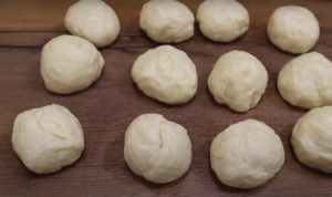 Uformuj w kulę i umieść w misce. Przykryj ręcznikiem. Odczekaj 10 minut. Wymieszaj składniki razem. Uformować ciasto w kulę, a następnie podzielić na mniejsze kawałki.