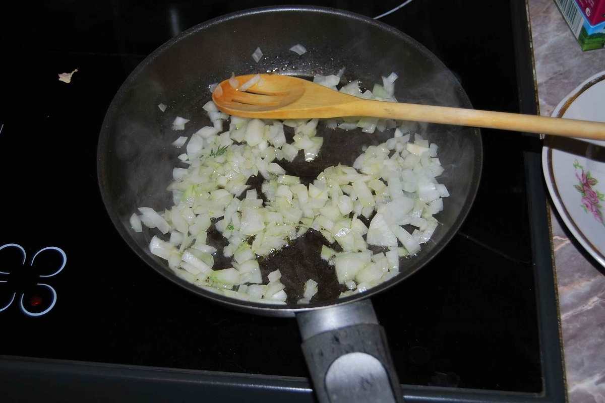 Na patelni rozgrzej masło i dodaj cebulę, którą smaż do miękkości.