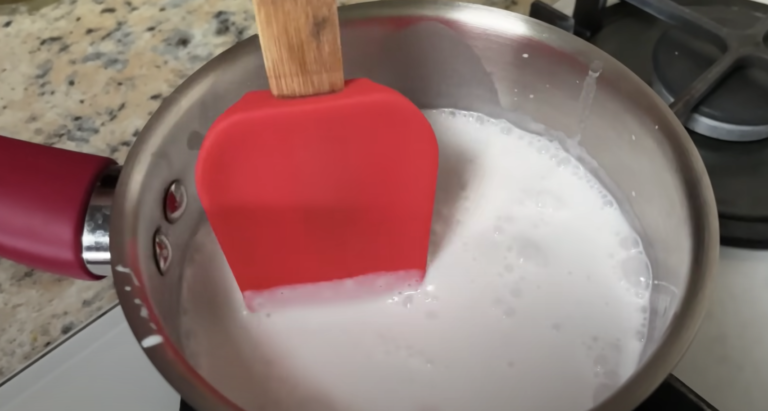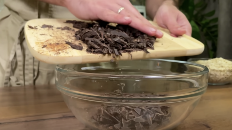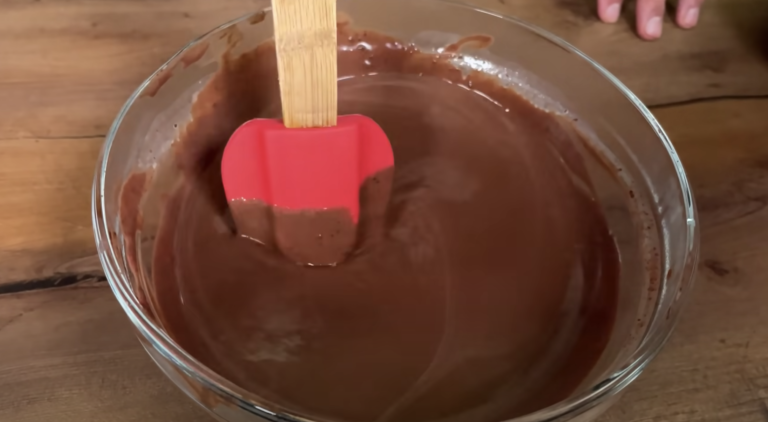 Następnie mieszamy czekoladę z podgrzanym mlekiem i mieszamy oba składniki, dopóki czekolada się nie rozpuści i składniki nie połączą się w jedną całość.