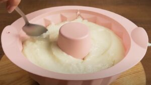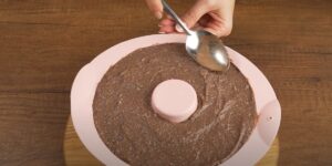 Po zdjęciu naczynia z palnika, dodać jeszcze masło i wszystko razem wymieszać. Połowę masy umieścić w formie, a drugą część wymieszać z kakao.