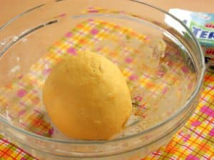 W momencie gdy mieszana masa stanie się jednolita należy uformować z niej kulę i na chwilę odstawić.