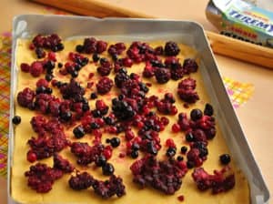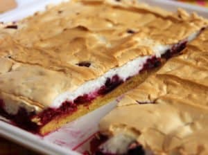 Gdy ubijana skrobia z jajkami utworzy sztywną pianę trzeba posmarować nią powierzchnię ciasta. Całość należy wsadzić do piekarnika na 40 minut i piec w temperaturze 180 stopni Celsjusza.