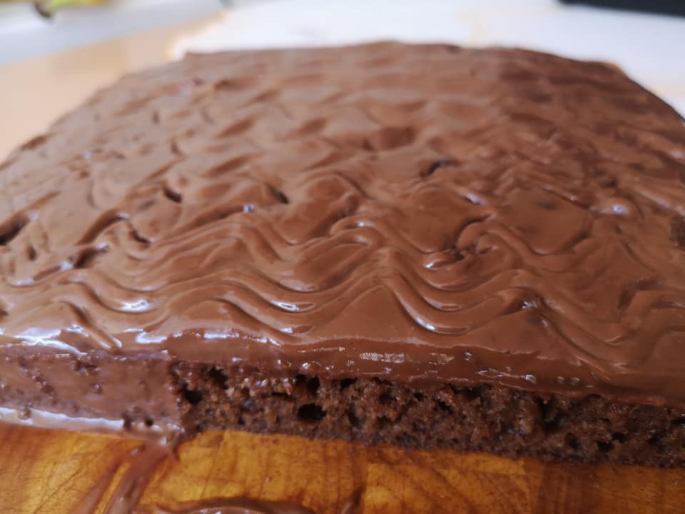Upieczone ciasto wyjmujemy z piekarnika, studzimy i zalewamy wystudzoną kawą oraz smarujemy konfiturą morelową i polewamy przygotowanym wcześniej gęstym lukrem. Tak przygotowane ciasto, wkładamy do lodówki na około 2 godziny, celem połączenia się wszystkich składników.