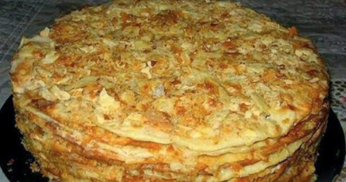 Aby ciasto było idealnie równe, na każdy kawałek połóż talerz o nieco mniejszej średnicy i obetnij odstające brzegi. Obcięte z krawędzi ciasto odłóż na bok. Każdą warstwę ciasta dokładnie posmaruj przygotowanym wcześniej kremem. Orzechy, wraz z odłożonymi resztkami ciasta rozkrusz razem w blenderze i posyp nimi ciasto z każdej strony.