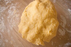Na początku należy zetrzeć skórkę z cytryny, a następnie z połowy owocu wycisnąć sok. Ubij jajka, dodając sok i cukier. Dodaj śmietanę, miękkie masło i ubij ponownie. Do tak przygotowanej mieszanki dodaj skórkę z cytryny, przesianą mąkę i proszek do pieczenia. Ugnieć ciasto, a następnie rozdziel na 4 części, aby było wygodnie do rozwałkowania.