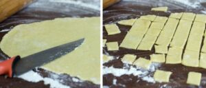 Jeśli rozwałkowana warstwa nie przekracza 0,5 cm, pokrój ciasto na małe kwadraty. Na głęboką patelnię wlej olej roślinny tak, aby jego warstwa wynosiła kilka milimetrów. Usmaż kwadraty pociętego wcześniej ciasta z dwóch stron na złoty kolor.
