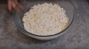 3. W miedzy czasie za pomocą tarki zetrzyj na dużych oczkach ser. Użyj takich jakie najbardziej lubisz, następnie połącz go z ulubionymi posiekanymi świeżymi ziołami.