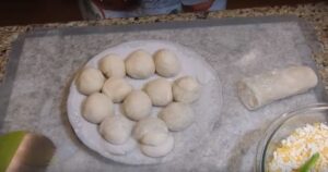4. Z ciasta uformuj małe kuleczki. Grubość placków nie powinna być większa niż pół centymetra.
