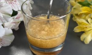 Wymieszaj 100 ml wrzącej wody z żelatyną. Mieszaj, aż nie będzie widać żadnych grudek. Połącz twaróg z syropem ananasowym.