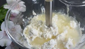 Można to zrobić za pomocą miksera, a jeśli go nie masz, to za pomocą blendera. Wmieszaj do masy płynną żelatynę. Wymieszaj wszystkie składniki razem. Drobno posiekaj ananasa.