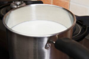 Na początek będziemy potrzebować wysokiego rondelka do którego wlejemy mleko. Do mleka powoli i stopniowo dodajemy cukier, dokładnie mieszając na małym ogniu doprowadzamy je do wrzenia. Całość, wciąż na małym ogniu gotujemy w zależności od zawartości tłuszczy w przedziale między 1,5 a 2,5 godziny.