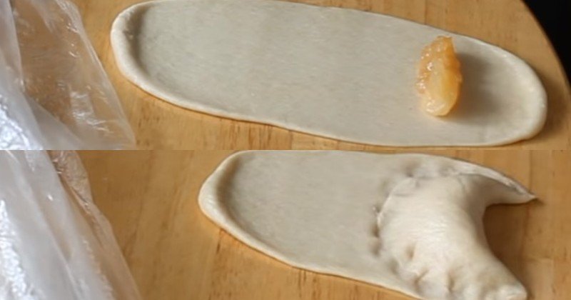 Wrabiaj do uzyskania ciasta. Na koniec dodaj 75 g masła i zagnieć ciasto. Odstaw na około 60 minut. Otrzymaną porcję ciasta podziel na kawałki. Jeśli chcesz przygotować większe rogaliki, wydziel około 8-10 porcji. Każdy kawałek osobno rozwałkuj. Na końcu ciasta połóż wybrany przez siebie nadzienie, lekko zawiń je i końce ciasta połącz.
