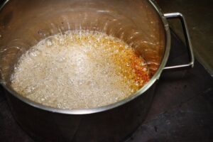 Kandyzowane śliwki są łatwe do przygotowania. W rondlu doprowadzamy cukier do wrzenia. Gdy woda się zagotuje, dodajemy do rondla wcześniej przygotowane, pozbawione pestek śliwki.