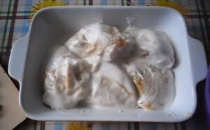 2. Tak przyprawione mięso włóż do miski, do której wlej kefir ( kurczak powinien być cały zakryty).