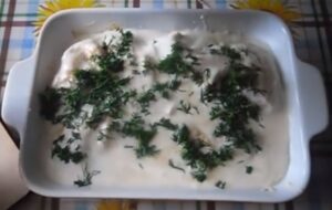 4. Po tym czasie przełóż kurczaka do naczynia żaroodpornego, marynatę także wlej, po czym piecz przez 60 minut w 180 stopniach.