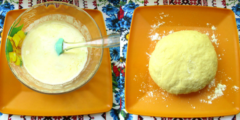 Do głębokiej miski wsypujemy sól, cukier zwykły i i waniliowy. Teraz dodajemy jajka i mieszamy. Następnie mieszkamy z kefirem i olejem słonecznikowy.