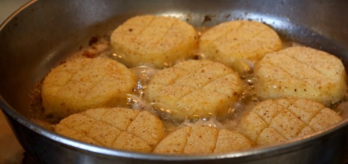 Na średnim gazie rozgrzej porządnie olej i dodaj do niego masło. Ziemniaczane kotlety smaż z każdej strony do uzyskania złocistego koloru.