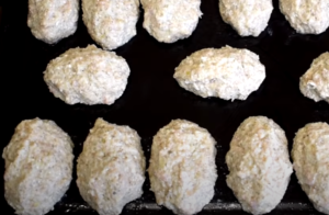 Zmiksuj czosnek i cebulę w blenderze. Dodaj do mieszanki mięsnej. W osobnej misce wymieszać bułkę tartą z wodą. Nasmarować olejem patelnię. Za pomocą łopatki formuj małe kawałki masy i układaj je obok siebie na naczyniu.
