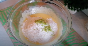 Gdy wszystko jest już dobrze połączone, dodaj do miski mąkę i proszek do pieczenia.