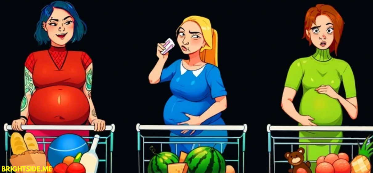 💡 Podpowiedź: Skup się na tym, co powinno być widoczne u kobiety w ciąży, szczególnie przy obcisłym ubraniu.