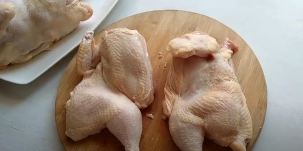 Najpierw przygotuj kurczaka: dokładnie go umyj, przetnij na pół, usuń szyję i końcówki skrzydeł. W misce wymieszaj przyprawy według własnych preferencji.