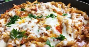 3. Na wierzch danie posyp posiekaną bazylię oraz startą mozzarellę.