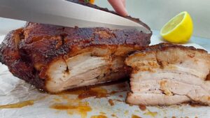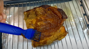 Wyjęte z piekarnika mięso odwiń z folii i posmaruj dokładnie marynatą z każdej strony. Połóż na grillu i piecz od dziesięciu minut do kwadransa w temperaturze 220 stopni. Gotowe mięso owiń jeszcze folią i pozwól mu odpocząć przez piętnaście minut. Po tym czasie podaj gotową potrawę.