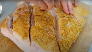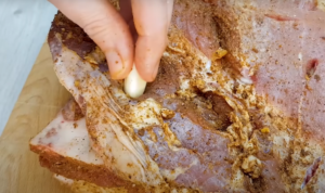 Przygotuj również małe nacięcia i umieść w nich ząbki czosnku.
