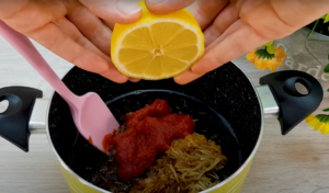 Zetrzyj na tarce umyte jabłko i połącz dokładnie z sosem sojowym, sokiem z cytryny i koncentratem. Pod koniec dosyp jeszcze przypraw: cynamonu, papryki i czosnku i dosłodź całość cukrem.