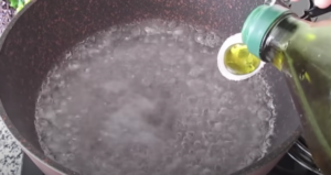 Do garnka nalewamy wodę, dodajemy sól oraz oliwę z oliwek.