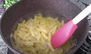 Wodę doprowadzamy do wrzenia i wsypujemy do niej makaron.
