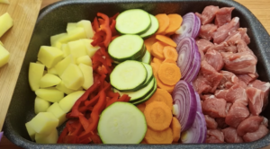 Wystarczy przekroić i ułożyć podane składniki w formie. Uzyskane w ten sposób mięso jest niezwykle miękkie i aromatyczne, a przygotowane warzywa doskonale upieczone.