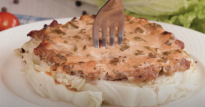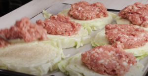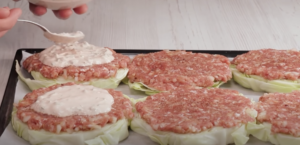 Tak przygotowaną mieszankę nakładamy na mięsne kotlety.