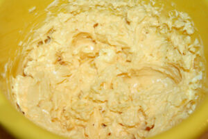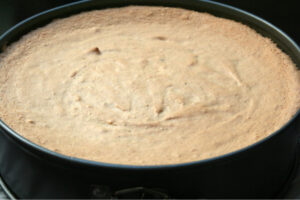 Ciasto wlać do okrągłej formy do pieczenia o średnicy ok. 25 cm. Piec w piekarniku przez ok. 30 minut w temperaturze 180’C. Wyjąć z piekarnika i odstawić do ostygnięcia.