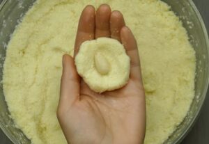 5. Tak przygotowaną mieszankę pozostaw na jeden dzień w lodówce. Kolejnego dnia zacznij formować nie dużej wielkości kuleczki.