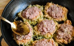 Połączenie chrupiących ziemniaków z pysznym soczystym mięsem daje danie, które w bardzo szybkim czasie znika ze wszystkich talerzy, Przygotowanie tych placków nie zajmie Ci dużo czasu, a wszystkie potrzebne składniki są bardzo łatwo dostępne o każdej porze roku. Koniecznie przygotuj je już dziś, a gwarantuje że Twoja rodzina będzie zachwycona!