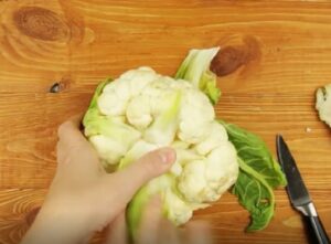 2. Następnie pod bieżącą wodą umyj oraz oczyść bardzo dokładnie kalafior.