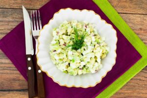Przepis na sałatkę „Mewa” był wykorzystywany przez gospodynie domowe już w ubiegłym wieku, chętnie korzystały z niego nasze mamy, babcie i prababcie, co jest tak kuszącego w tej sałatce?