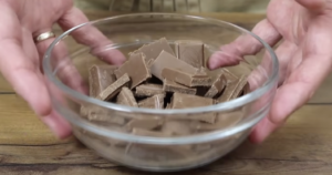 Czekoladę posiekać na małe kawałki, a następnie roztopić w gorącej kąpieli wodnej lub w mikrofalówce.