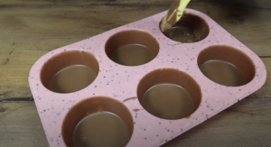 Za pomocą pędzelka do ciasta rozprowadź czekoladę w silikonowej foremce do muffinek. Wstaw do zamrażarki na ok. 10 minut. Rozprowadź kolejną warstwę czekolady na wierzchu, a następnie umieść formę z powrotem w zamrażarce. Na koniec będziesz potrzebował jeszcze trochę czekolady.
