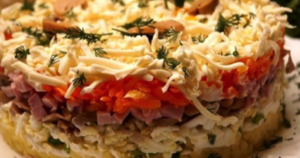 Sprawdzony przepis: Pieczarki, szynka, żółty ser, jajka… i powstaje warstwowa sałatka, którą każdy uwielbia.
