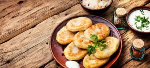 Masę ziemniaczaną wymieszać z przesianą razem mąką. Z mieszanki mięsa i ciasta uformować małe placki. Po uformowaniu placków, smaż je na oliwie z oliwek do uzyskania złotego koloru. Możesz eksperymentować z mieszanką, dodając różne składniki, np. pieczarki czy ulubione zioła.